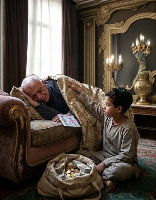 تظاهر الملياردير بالنوم، وترك على الطاولة رزمًا من المال والذهب، ليختبر ابن الخادمة…..